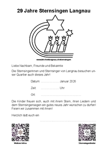 Der alte Brauch des Sternsingens gehört seit 1997 auch in Langnau bereits zur Tradition und ist zum Grossanlass geworden. Das Sternsingen wird getragen von der…